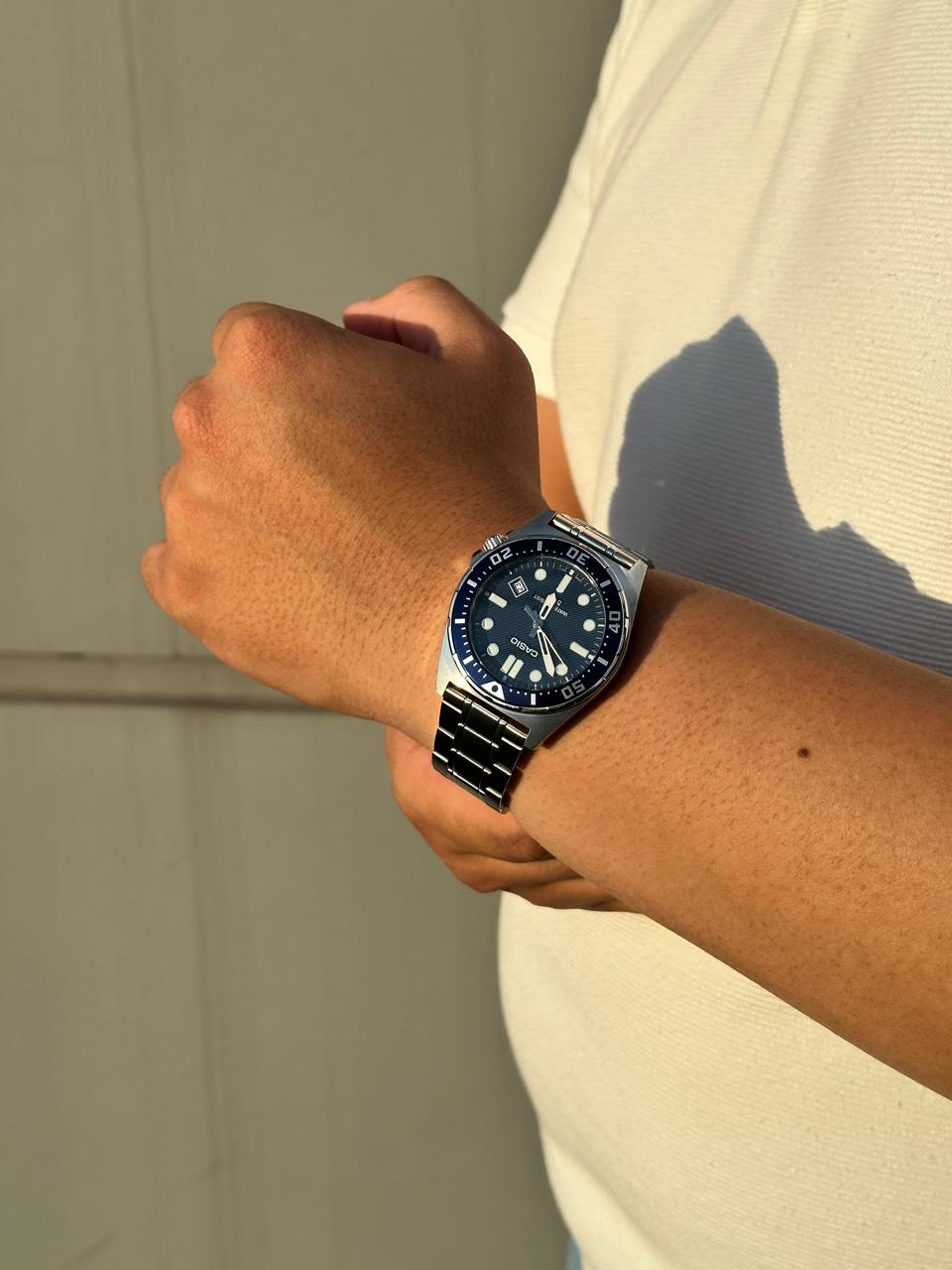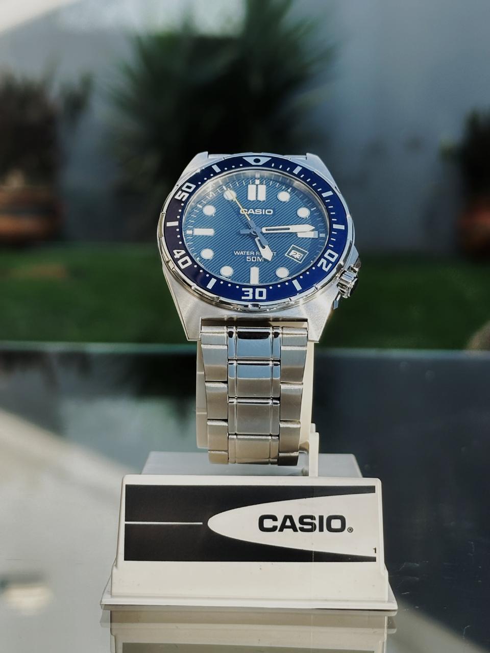 El Casio MTD-135D-2AV tiene un diseño clásico y correa de acero inoxidable.